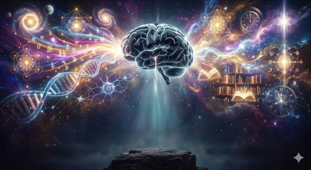 El cerebro humano fue diseñado (evolucionó) de tal manera que no tiene la capacidad de almacenar todos los datos del universo. Esa no es su función de diseño. Es la función de diseño de la Conciencia almacenar todos los datos del universo. Es una función de diseño del cerebro almacenar datos suficientes para atravesar este momento presente.