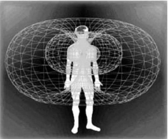Figura 2. Ilustración que demuestra la forma y el tamaño relativo del campo energético que rodea al corazón humano.