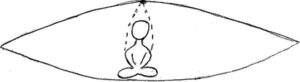 En este diagrama la figura está sentada con las piernas cruzadas, lo que significa que su grupa (cadera) estará en la base del disco.