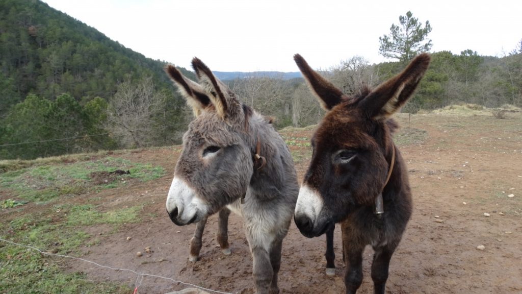 – Veo una burra atada al tronco del arbusto y a sus dos burritos que retozan a su alrededor sueltos. A veces vienen y maman un poquito, y luego se alejan corriendo por detrás de la colina donde parecen perderse, para aparecer enseguida cerca de su burra madre. Y esto lo han venido haciendo desde que llegué aquí. Los miraba sin ver mientras te hablaba.